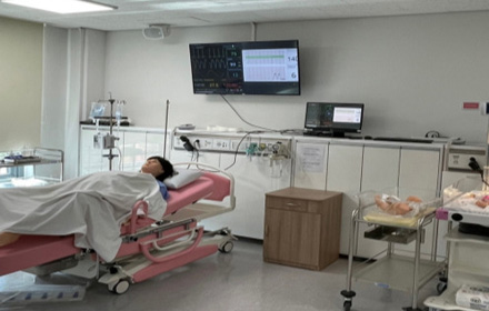 분만,신생아 시뮬레이션실은 산모와 태아를 사정하고 분만과정을 관찰하며 분만 시 간호 및 응급상황에 대한 대처 등의 실무역량을 강화하기 위한 곳으로 고위험 신생아를 사정하고 저산소증 등의 응급 상황에 대처할 수 있는 역량을 강화하기 위한 공간이다. 신생아 시뮬레이터(Supertory), 분만 시뮬레이터 (Victory), 방사보온기, 녹화용 카메라와 음향시스템이 구비되어 있다.