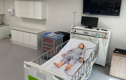 소아 입원 시뮬레이션실은 아동의 건강문제를 사정하고, 상황에 따른 간호중재를 실습하여 아동간호실무역량을 강화하기 위한 공간이 다. 특히 최고 사양의 소아 시뮬레이터인 Pediatric Hal은 신경계 사정과 당뇨환아관리를 실습하기에 최적화된 모형이다. 시뮬레이터 외에 녹화용 카멜, 음향시스템, 중앙산소공급장치, 흡인시스템, Infusion pump, 응급카트 등이 구비되어 있다.