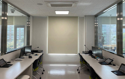 시나리오 구현이 끝난 후 교수자와 학습자가 경험한 내용을 성찰, 토론, 피드백을 통하여 학습자의 학습목적을 촉진시키고, 간호수행 역량을 강화시키기 위한 공간으로, 필요에 따라 소그룹 또은 대그룹 으로 활용할 수 있도록 약 50여 명을 수용할 수 있다. 디브리핑 시 스템, 강사추적 카메라, Wall monitor, 전자교탁, 컴퓨터가 내장된 책상 등이 구비되어 있다.