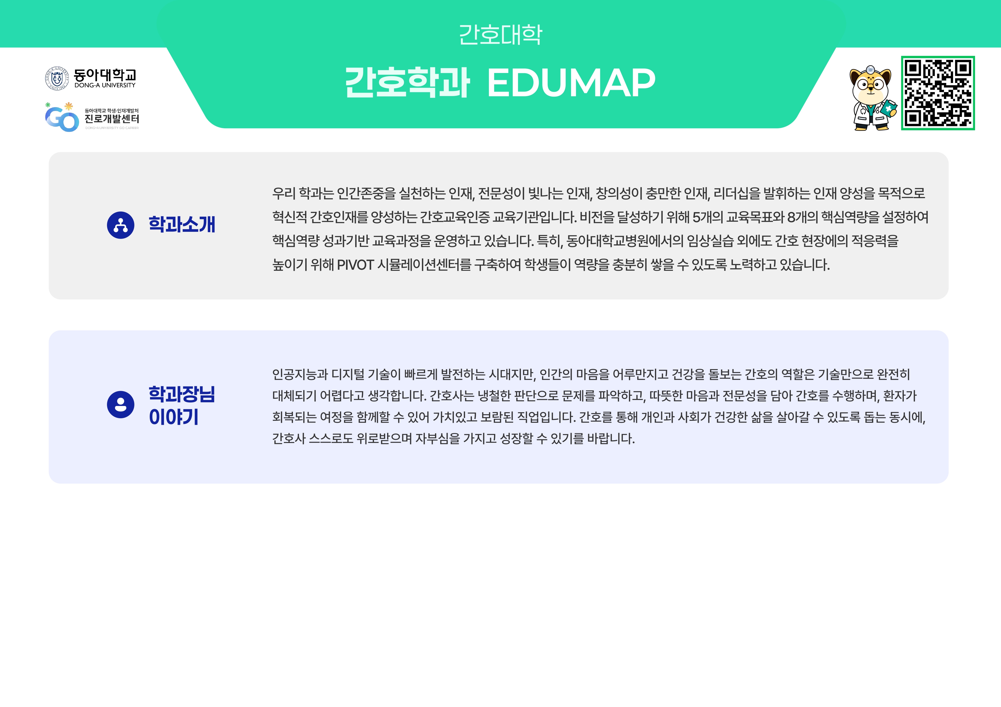 교과과정 열린 미래 꿈이있는 대학, 동아대학교 메인으로 이동 교과과정 대학소개 PIVOT 시뮬레이션 센터 입학안내 교과과정 학생활동 커뮤니티 취업안내 동문 기타 닫기 진로로드맵(EDUMAP) 교과과정 일반대학원과정 중환자전문과정 감염관리전문과정 Job Tree 진로로드맵(EDUMAP) 닫기 교과과정 교과과정 교과과정 일반대학원과정 중환자전문과정 감염관리전문과정 Job Tree 진로로드맵(EDUMAP) 진로로드맵(EDUMAP) SNS 목록열기 FACEBOOK 공유하기 TWITTER 공유하기 BLOG 공유하기 SNS 목록닫기 인쇄 url 복사